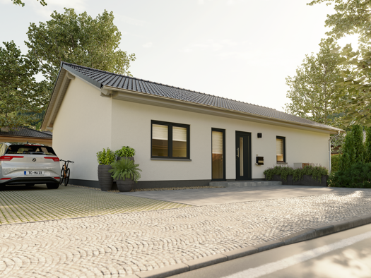 Objektbeschreibung Hier spielt sich alles auf einer Wohnebene ab - Für eine Familie mit zwei Kindern ist der TC Bungalow 110 ein ideales Zuhause. Zum TC HAUS sind folgende Mehrkosten wie beispielswei...