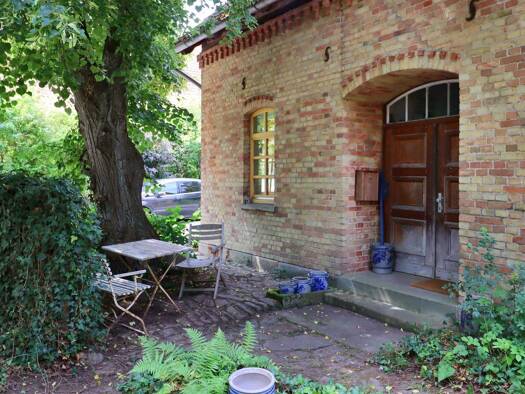 Das zweigeschossige Wohnhaus ist Teil eines denkmalgeschützten Hofensembles aus dem 19. Jahrhundert, mit vier Hauptgebäuden, mehreren Nebengebäuden und Gärten um einen gemeinsamen Hof. Das Erdgeschos...