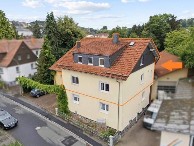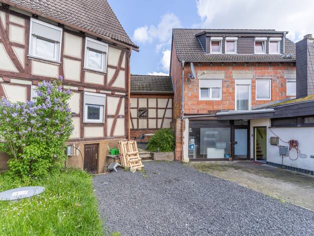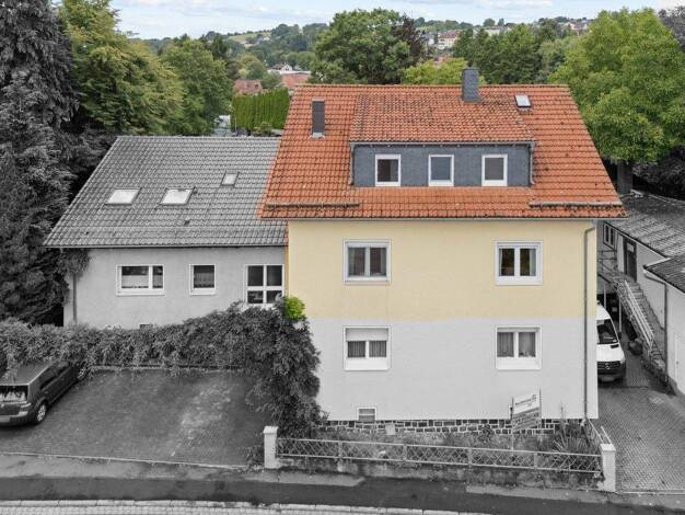 Dieses Wohn- und Geschäftshaus in Gedern bietet eine hervorragende Investitionsmöglichkeit mit soliden Mieteinnahmen von monatlich 2.985 €, die durch die vermieteten Wohnungen sowie den Gewerbebereic...