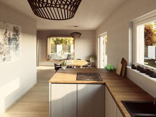 EINFAMILIENHAUS MIT OFFENER ARCHITEKTUR Zeitlose Eleganz außen, Weite und ein besonderes Raumgefühl innen - das ist unser Stil. Unter dem Satteldach warten hier rund 135 m² auf zwei Ebenen darauf, be...