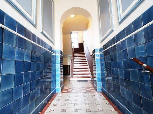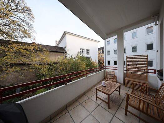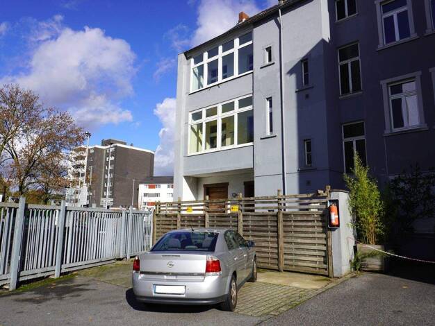 Das Mehrfamilienhaus wurde 1928 in massiver Bauweise errichtet. Die Erdgeschosswohnung mit ca. 78 m² verfügt über 3 Zimmer sowie eine überdachte Terrasse zur Hofseite. Im Obergeschoss liegt eine 2-Zi...