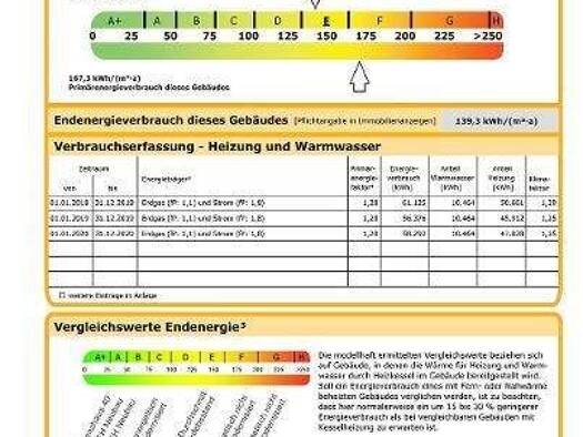 ENERGIEAUSWEIS - Energieeffizienzklasse: E - erstellt am: 24.09.2024 - gültig bis: 24.09.2034 - Art des Energieausweises: nach Verbrauch - Verbrauchskennwert insgesamt: ca. 139,3 kWh/(m²a) - Verbrauc...