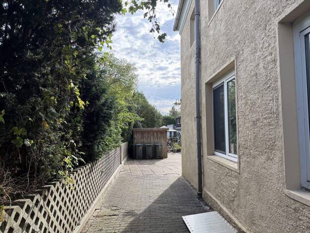 Das Mehrfamilienhaus liegt ruhig am Ende einer Sackgasse, etwas zurückgesetzt in zweiter Reihe, was ihm eine geschützte Atmosphäre verleiht. Schon beim ersten Eindruck wird deutlich, dass hier mit Bl...