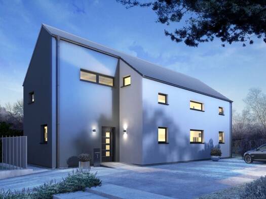 Unser Evolution 154 überzeugt wie alle Evolution Häuser mit Vielfalt und Individualität bei Architektur und Design. Die großen Fenster und die klare Liniensprache verleihen diesem Haus sein elegant-m...