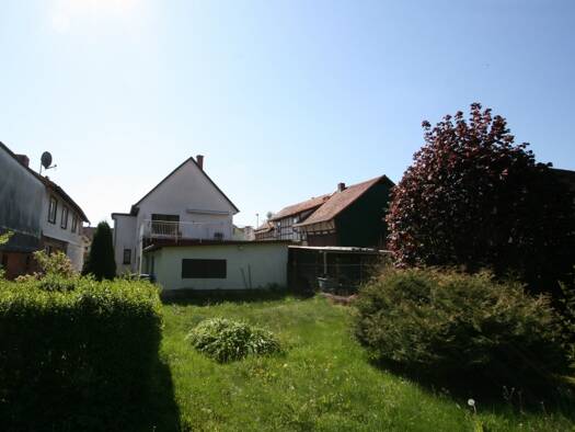 Die Doppelhaushälfte mit zwei Etagen und ohne Keller verfügt über eine ausgebaute Dachgeschossfläche von 246 m². Zusätzlich gibt es hinter dem Haus eingeschossige Anbauten sowie eine Scheune mit Hühn...