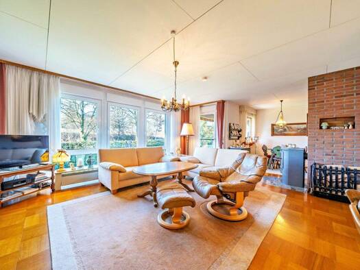 Betreten Sie dieses charmante Haus, das 1983 erbaut wurde und eine Wohnfläche von 134m² bietet. Der Eingangsbereich führt Sie in einen einladenden Flur, der direkt in den großzügigen Wohn- und Essber...