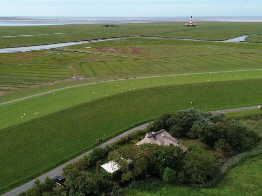 Schönes Reetdachhaus direkt am Seedeich auf 2.319 qm Grundstück. Sie gehen nur über einen Gemeindeweg, rauf auf den Deich und sind direkt am Nationalpark an der Nordsee. Mit einem Blick auf die weite...