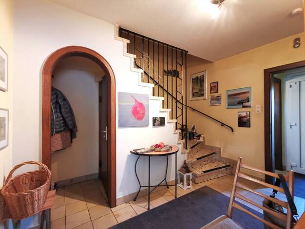 Stellen Sie sich vor, wie Sie aus dem offenen Flur direkt auf die Terrasse treten. Ein frischer Hauch Herbstluft begrüßt Sie, der Duft von Laub liegt in der Luft. Vor Ihnen leuchtet der Wald in warme...