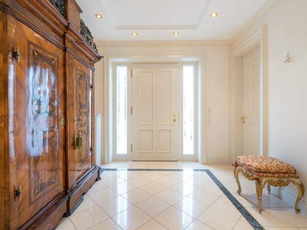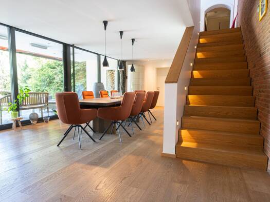 Versteckt hinter dichtem, altem Baumbestand und damit von außen nahezu uneinsehbar, entfaltet sich auf einem rund 3.000 m² großen, eingewachsenen Grundstück ein Wohnidyll, welches Ruhe, Exklusivität ...