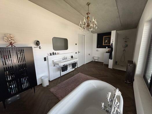 Diese einzigartige Architektenvilla mit Einliegerwohnung, fertiggestellt im Jahre 2012, gleicht einer Oase für luxuriöses Wohnen mit sehr hohem Wohnkomfort. Mit einer großzügigen Wohnfläche von circa...