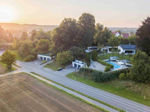 Architektur trifft Natur - Eine Bauhausvilla als Statement In Aystetten, idyllisch in sanfter Hanglage mit weitem Panoramablick über die umliegende Landschaft, erhebt sich diese außergewöhnliche Bauh...