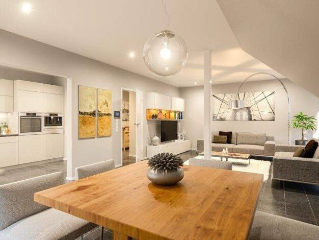 Der beste Weg in Ihr neues Zuhause Dieses Raumkonzept (Clou 174) steht für unkonventionelle Ideen. Küche und Esszimmer sind zu einer imponierenden Einheit mit 32 m² Fläche verschmolzen. Das Wohnzimme...