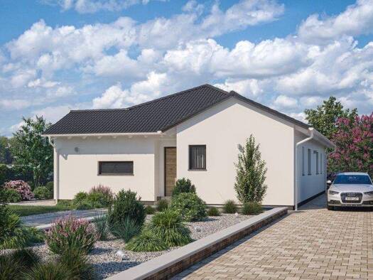 Willkommen Zuhause! Freuen Sie sich mit dem Entwurf "CLOU 126" auf einen zeitgemäßen Winkelbungalow. Alles ist ebenerdig zu erreichen und der Terrassenbereich ist überdacht. Das ist sehr praktisch be...