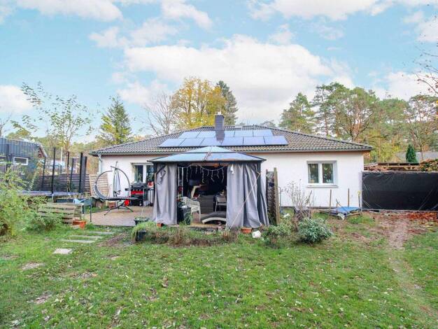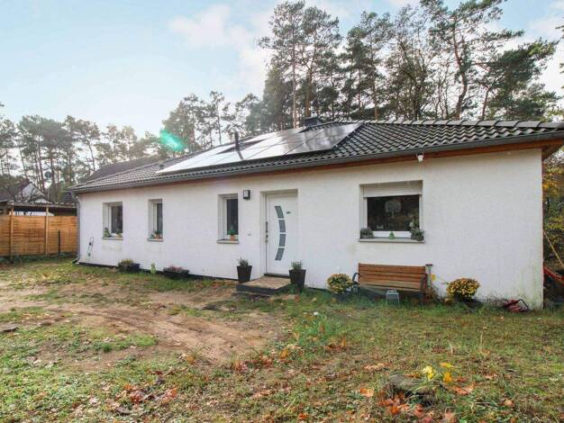 Objektnr: 1069575 Dieser großzügige Bungalow aus dem Baujahr 2016 befindet sich auf einem beeindruckenden 1.382 m² großen Grundstück in ruhiger Lage von Beelitz. Das Haus bietet auf 110 m² Wohnfläche...