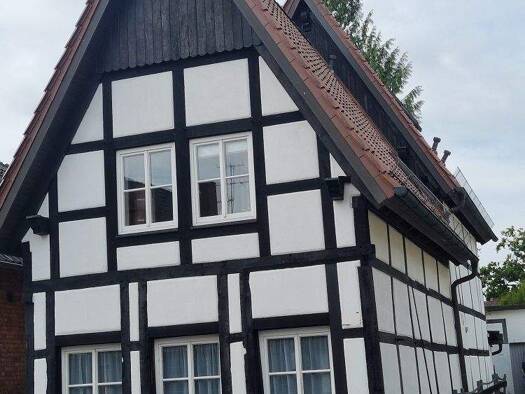 Willkommen in diesem historischen Fachwerkhaus, das Vergangenheit und Gegenwart harmonisch verbindet. Das Objekt liegt mitten im Ortskern von Petershagen. Von hier aus erreichen Sie fußläufig das Sch...