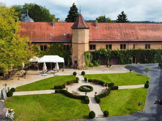 Von Poll Immobilien Kitzingen präsentiert Ihnen ein einzigartiges Schloss, das Historie, modernen Komfort und Genuss vereint. Das Anwesen umfasst ein renommiertes Restaurant mit Biergarten, einen fes...