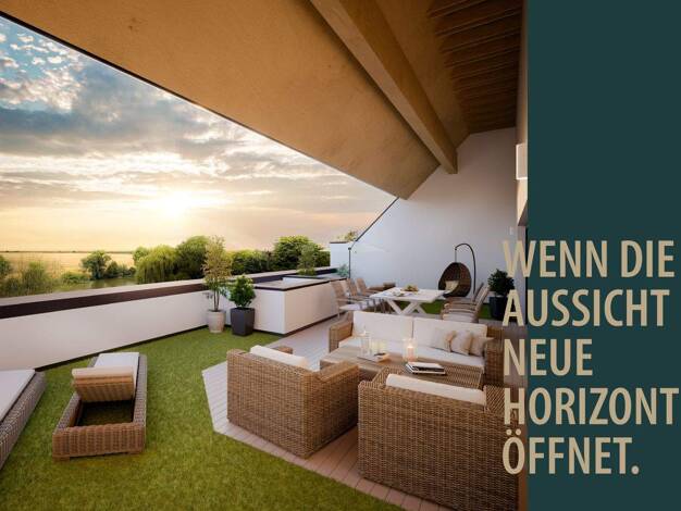 Raus aus dem Alltag heißt auf Gut Strehlhof: einfach zuhause bleiben. Terrasse, Balkon und Loggia laden zum entspannten Tagesausklang ein, der unverbaubare Blick in die Weiten der Natur mit Seeblick ...