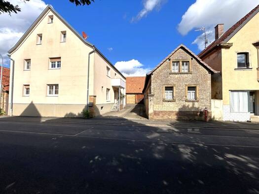Entdecken Sie ein großzügiges Baugrundstück in dem malerischen Ort Lülsfeld, auf dem ein Einfamilienhaus aus dem Jahr 1860 sowie mehrere Nebengebäude wie alte Stallungen, eine rießige Scheune mit ca....