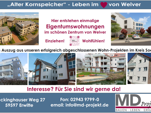 DAS Wohn- und Geschäftshaus mitten im Zentrum vom schönen Welver! Im 1. Quartal 2026 startet hier die Errichtung einer einzigartigen Immobilie unter dem Namen „Alter Kornspeicher“. Hier bieten wir Ih...
