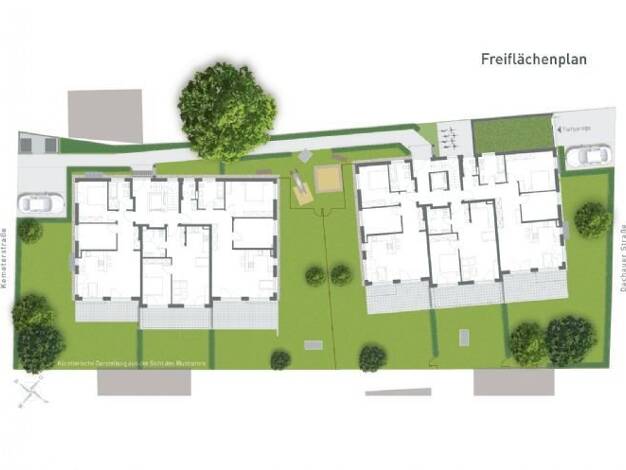 Wohnung 1: Es entstehen zwei moderne Mehrfamilienhäuser mit insgesamt 13 individuell geschnittenen Wohnungen. Die moderne Wohnanlage in der Sommerstraße 23 / Roggensteinerstraße 152 entsteht in massi...