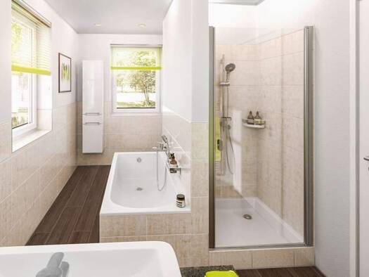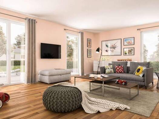 Viele Extras standardmäßig. Ein Haus mit Platz und Ideen. Dazu die passende Bodenplatte. Dieses attraktive Niedrigenergiespar-Haus erfüllt alle Anforderungen, die eine Familie an Platz und Ausstattun...