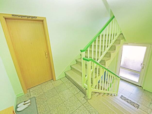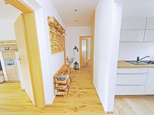 • 2023 Erstbezug nach neu Renovierung // ungekündigtes Mietverhältnis • Kompl. renovierte 3-Raum-Whg ca. 64 m², 4 m² Balkon, Gem.garten • Neu installierte Einbauküche m. Geschirrspüler • Haus um 1999...
