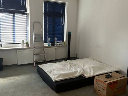 - Wohnhaus mit 4 Eingängen - Wohnung befindet sich im 2. Obergeschoss - leerstehende 2- Raumwohnung mit Küche, Bad, Flur 2 Zimmer, davon ein Durchgangszimmer - Wohnung komplett mit Möbeln(zu entsorge...