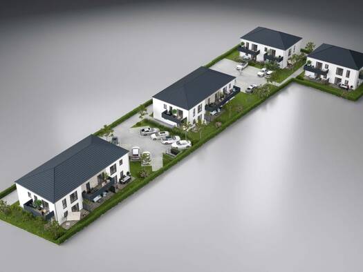 Hier entsteht ein aufgelockertes Gebäude-Ensemble aus 4 Häusern mit insgesamt 20 Eigentumswohnungen. Im hinteren Bereich des Grundstückes werden 2 Häuser mit je 4 Eigentumswohnungen errichtet. Die hi...