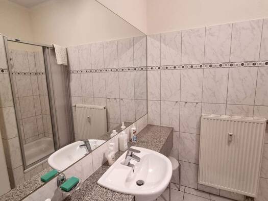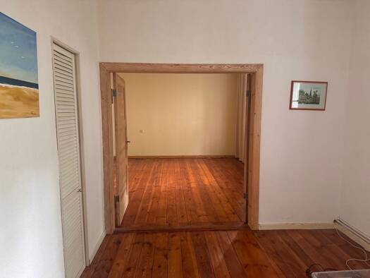 50% Anteil an der Wohnung Nr. 1 im Erdgeschoss mit einer Wohnfläche von 52 m², bestehend aus Flur, Bad, Küche, Wohn-/Schlafzimmer und Veranda, sowie einem Autoabstellplatz. Das Gebäude wurde vor 1900...