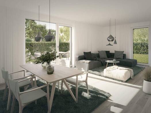 Die 8 hochwertig ausgestatteten, barrierefreien Wohnungen mit jeweils 1, 2 oder 3 Schlafzimmern, einem großzügigen Wohn- und Essbereich, Balkon, Terrasse oder großem Garten, lassen genug Raum zum Ent...