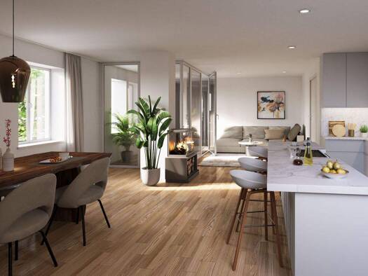 Das Wohnbauprojekt nach dem Energiesparstandard „Effizienzhaus 55“ liegt in fußläufiger Entfernung zum Marktplatz, S-Bahnhof sowie dem Einkaufszentrum eEinZ in ruhiger Lage mit altem Baumbestand in g...