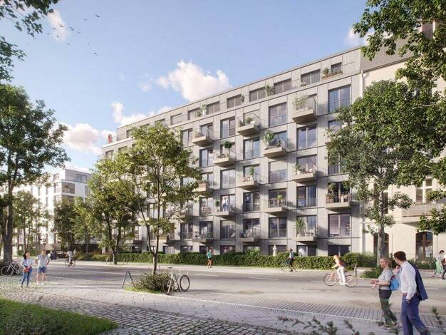 Antonia ist zeitgemäße, elegante Architektur, die sich harmonisch in die durch Baudenkmäler geprägte Nachbarschaft einfügt. Dies gelingt durch sanfte Rundungen der Fassaden, die warmen, sandigen Farb...