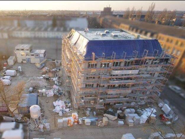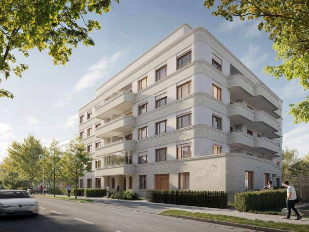 Im Herzen von Berlin-Mitte entsteht ein Wohnhaus, das Eleganz und urbanen Lifestyle vereint. Die moderne Fassade, durchzogen von großzügigen Balkonen und bodentiefen Fenstern, erstrahlt in einem sanf...