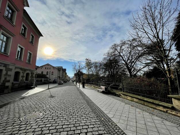 Objektbeschreibung Die Wohnung liegt in einem um 1900 in massiver Bauweise errichtetem Gebäude im Denkmalensemble von Sonneberg und wird über eine Gasetagenheizung beheizt. Raumaufteilung Wohnzimmer ...