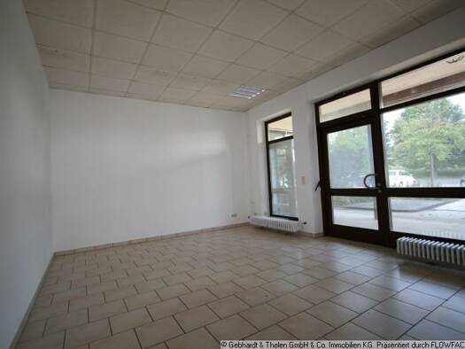 Gewerbefläche in einem 1998 erbauten Wohn-/und Geschäftshaus in gut sichtbarer Lage direkt an der St2205 am Ortseingang von Bad Rodach. Vermietet werden 2-Zimmer mit ca. 40 m² Fläche, der Flur und de...