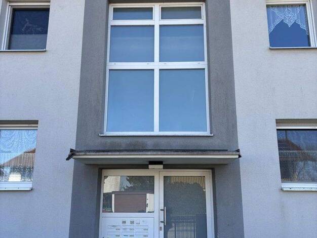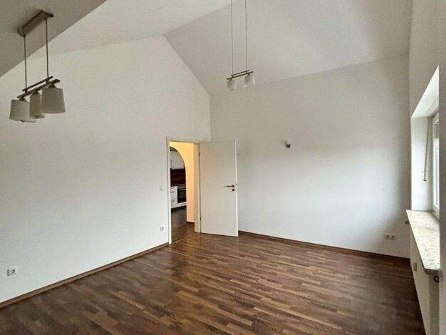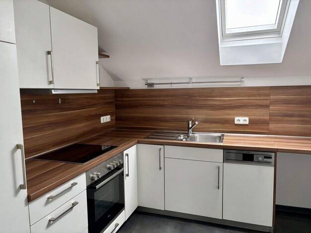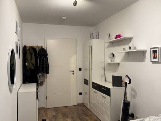 Die schöne, modernisierte DG-Wohnung befindet sich im 2. Stock eines gepflegten 6-Familien-Hauses. Ein geräumiger Flur mit modernen dunkelgrauen Fliesen und hohen weißen Wänden versprüht Behaglichkei...