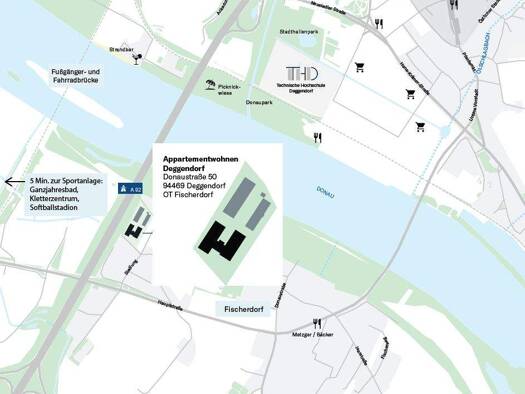 Die Appartementwohnanlage entsteht in der Donaustraße 50 in Deggendorf im Ortsteil Fischerdorf. Es wird eine Wohnanlage mit 234 Appartments. Die möblierten Ein- und Zwei-Zimmer-Appartements mit Wohnf...