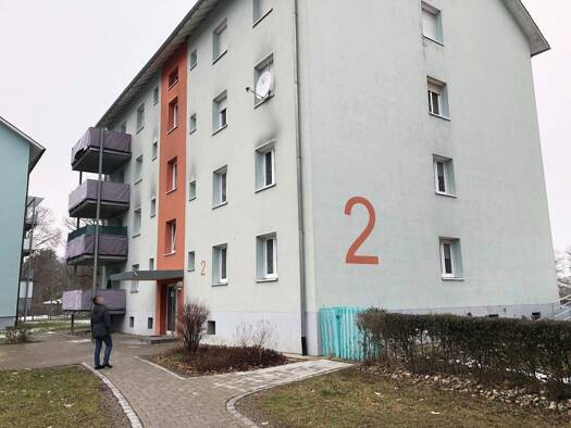 Die Wohnung befindet sich in einem 2006 neu erbauten 6-Familienwohnhaus. Das Haus hat eine Tiefgarage. Ebenso gehört zu der Wohnung ein Keller und ein Waschmaschinen- und ein Fahrradraum. Ein Hausmei...