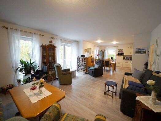 Kurzbeschreibung Ländliche Wohnung im Zweifamilienhaus Objekt Diese 3-Zimmer-Wohnung mit 96 m² bietet offene, lichtdurchflutete Räume. Beim Hereinkommen erwartet Sie ein offener Wohnbereich mit Balko...