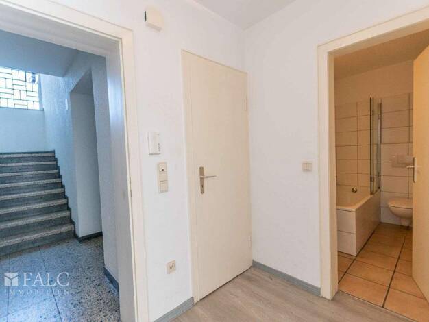 Diese frisch renovierte Einzimmerwohnung im 1. OG befindet sich in direkter Innenstadtlage. Von der Diele aus, wird der Wohn/-Schlafraum und das Badezimmer betreten. In der Diele befindet sich der Ab...