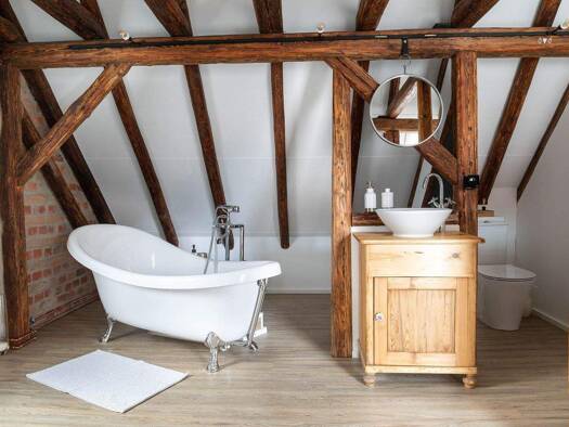 Apartment Deborah - Wohnen auf Zeit unter dem offenen Dachstuhl Es gibt Räume, die sofort ein Gefühl vermitteln. Dieses Apartment gehört dazu. Unter dem vollständig erhaltenen historischen Dachstuhl ...