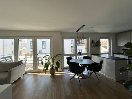 Wunderschöne, lichtdurchflutete Neubauwohnung mit geschickter Raumaufteilung und offenem Wohn-/Essbereich sowie Balkon. Sehr moderne, hochwertige Ausstattung. - Helle, gut geschnittene Räume - Balkon...
