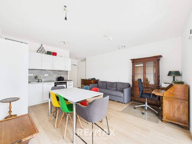 Diese zentrale 2-Zimmer-Wohnung in der Stadtmitte Esslingen ist ideal für Singles oder Paare. Die Wohnung verfügt über: - Wohnzimmer mit Schreibtisch, Stuhl und Regal - ausgestattet Küche mit Esszimm...