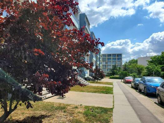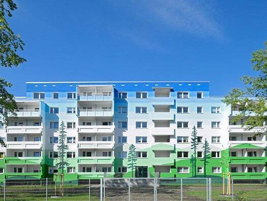 Unser Wohngebiet Elsteraue zeichnet sich durch eine ruhige, grüne Lage aus. Die sechsgeschossigen Wohnhäuser mit gepflegten Vorgärten sind von großzügigen begrünten Freiflächen umgeben, die mit Trock...