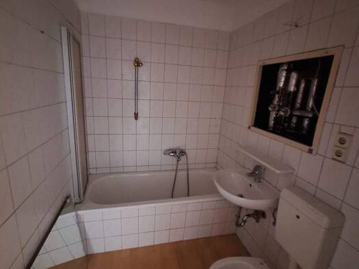 Die Single-Wohnung befindet sich im Hochparterre und verfügt über: - 1 kleiner Wohnbereich mit Küche - 1 Schlafzimmer - 1 Bad mit Wanne (innenliegend, ohne Fenster) - 1 Flur Wichtig: Die Wohnung hat ...