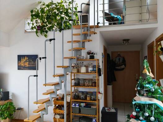 Objektreferenz: FIO-10917267340 Diese charmante Maisonette-Dachgeschosswohnung befindet sich in einem gepflegten Mehrfamilienhaus aus dem Jahr 1988 und erstreckt sich über zwei Etagen im 4. Obergesch...