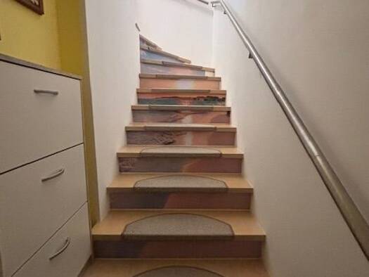Die Wohnung erstreckt sich über 3 Ebenen. Zur Wohnung gehört eine Terrasse im Erdgeschoss sowie Grünteil mit Hecke und Grenzmauern. Das Wohnzimmer besitzt ein Klimagerät.