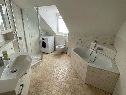 Vermietet wird eine schön aufgeteilte, helle Dachgeschoss-Wohnung über zwei Etagen in einer ruhigen, zentralen Nebenstraße. Es gibt drei separate Zimmer, es gibt kein Durchgangszimmer. Die obere Etag...