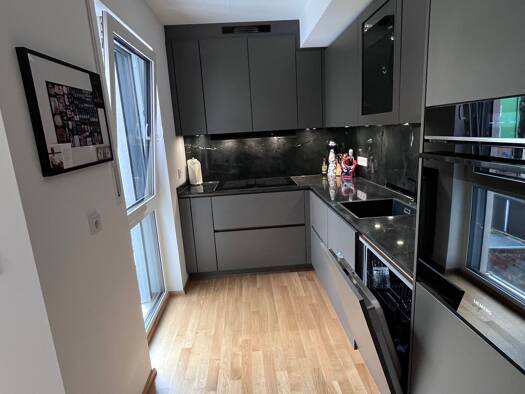 Objektbeschreibung: Wunderschöne Aussicht ins Grüne. Neuwertige 3 Zimmer Maisonette-Wohnung mit hochwertiger Teilmöblierung, in der zweiten und dritten Etage beziehen, die durch eine luxuriöse Innena...