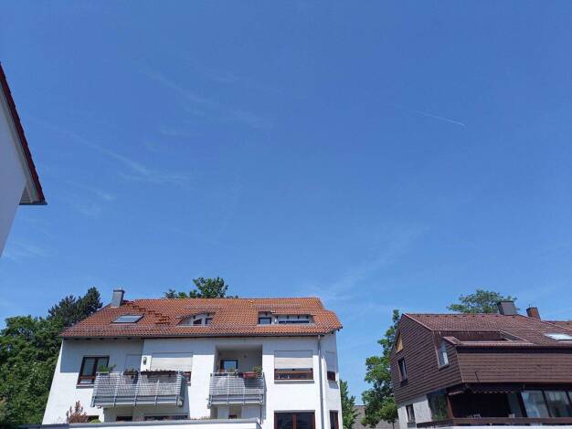 Sie betreten die Wohnung über einen kleinen Eingang und gelangen von dort in einen großen Raum mit Einbauküche und einem Balkon. Vom Balkon aus genießen Sie einen Ausblick nach Süden über die Dächer ...